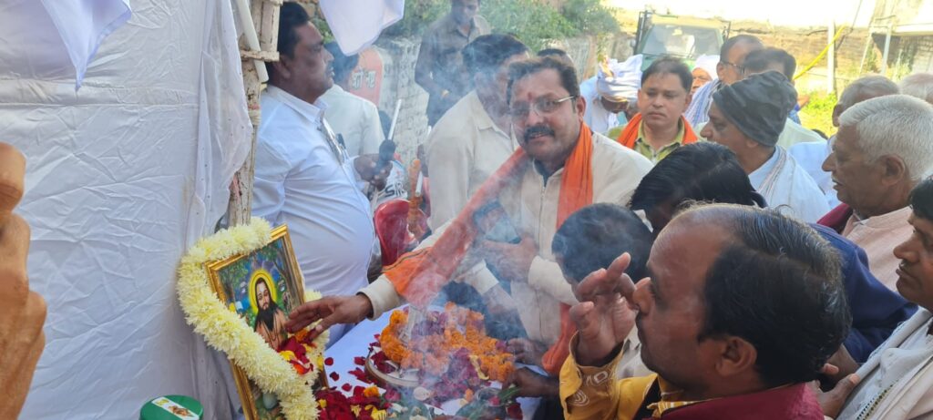 मनखे मनखे एक सामान ” का नारा देने वाले गुरु घासीदास बाबा ने सम्पूर्ण समाज के लोगों को सामान रूप से देखा और आपसी भेदभाव की भावना से दूर होने का सन्देश दिया उन्होंने कहा कि गुरु घासीदास बाबा ने सदैव ये सन्देश दिया कि समाज के समस्त लोगों को एक दूसरे से प्रेम के धागे से जुड़ा होना चाहिए । विधायक ने कहा कि हम सबको घासीदास बाबा के वचनों को अपने जीवन में आत्मसात करने की जरुरत है और उन्हीं के बोले वचनों को आत्मसात कर के हम अपने जीवन के असल उद्देश्य को प्राप्त कर सकते हैं । कार्यक्रम का संचालन विधायक प्रतिनिधि बीपी सिंह ने किया कार्यक्रम के दौरान सभी समाज के प्रमुख, सहित भाजपा पांचों मंडल के पदाधिकारी व बड़ी संख्या में सभी समाज के लोग उपस्थित थे।