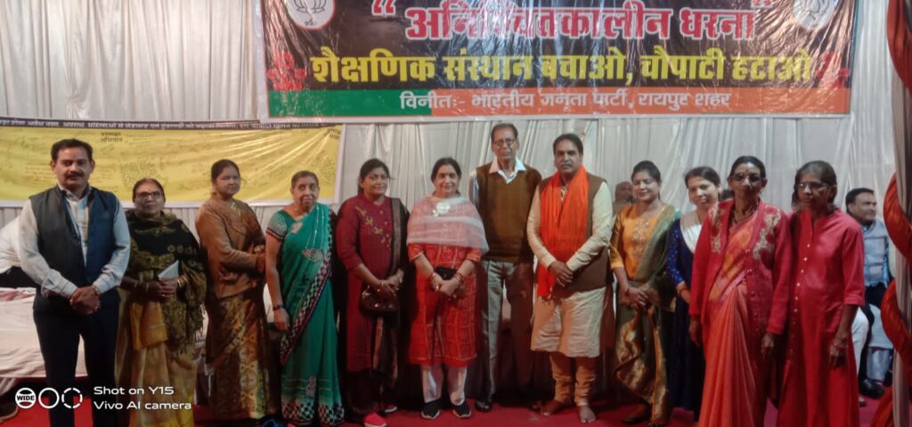 धरना स्थल में आहूत बैठक में आज अशोक पांडेय , प्रफुल्ल विश्वकर्मा , मीनल चौबे , शिवजलम दुबे ,भाजपा जिला महामंत्री द्वय ओंकार बैस , रमेश ठाकुर , उपाध्यक्ष बजरंग खंडेलवाल , आशु चंद्रवंशी , श्यामा चक्रवर्ती , ममता चंद्राकर , अमरजीत छाबड़ा , जिला मंत्री अकबर अली , गोपी साहू ,खेमकुमार सेन, मुरली शर्मा , सावित्री जगत , वंदना राठौड , राजू चक्रवर्ती , अमित शाह , गोविंदा गुप्ता , राहुल राव , अर्पित सूर्यवंशी , विशेष शाह , दीपक जयसवाल , भोला साहू , प्रीतम ठाकुर , श्रीनिवास राव, भूपेंद्र ठाकुर , अनिल सोनकर , नवीन शर्मा , सन्नी मावले , रजियन्त ध्रुव , जागो दुबे , विकास सेठिया ,पवन केशरवानी , चंद्रप्रकाश शर्मा , विनय जैन , नितेश शर्मा सहित बड़ी संख्या में पदाधिकारी एवं कार्यकर्ता उपस्थित थे ।