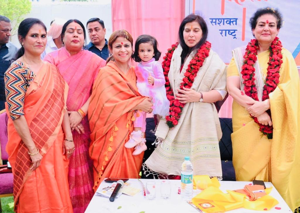 प्रारम्भ में श्रीमती रेखा शर्मा और सुश्री सरोज पाण्डेय का महिलाओं ने पुष्प वर्षा के साथ स्वागत किया।