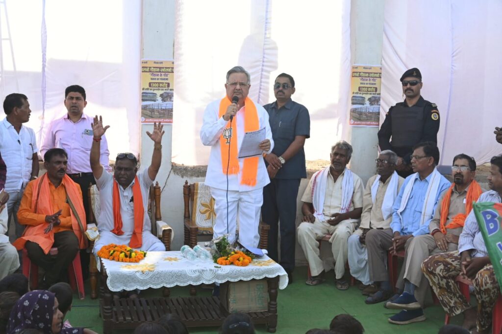 इस दौरान इन तीनों ही जगहों पर वे चौपाल में भी शामिल हुए जहां उन्होंने स्थानीय निवासियों के साथ गोठान की अव्यवस्था पर चर्चा की जिसमें उन्होंने मुख्यमंत्री भूपेश बघेल पर निशाना साधते हुए कहा कि मुख्यमंत्री भूपेश बघेल ने पिछले साढ़े चार साल में केवल घोटाले ही किए हैं जो एक-एक कर उजागर हो रहे हैं।