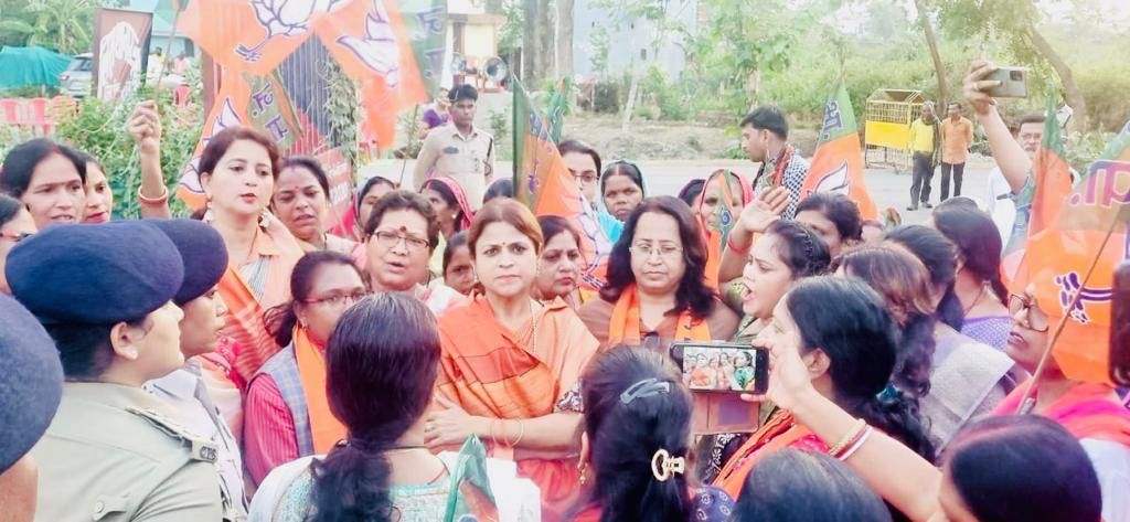 भारतीय जनता पार्टी महिला मोर्चा बिलासपुर ने जिलाध्यक्ष श्रीमती जयश्री चौकसे के नेतृत्व में रतनपुर में हुई घटना जिसमें दुष्कर्म पीड़िता की मॉ के खिलाफ काउंटर केस दर्ज कर उसे जेल भेजे जाने के विरोध में मोर्चा खोल दिया है। आज पुलिस थाना रतनपुर के समक्ष महिला मोर्चा की कार्यकर्ताओं ने धरना प्रदर्शन कर पुलिस कार्रवाई पर विरोध जताया। धरना प्रदर्शन के दौरान भाजपा महिला मोर्चा की कार्यकर्ता विभिन्न स्थानों से काफी संख्या में पहुॅची थी।