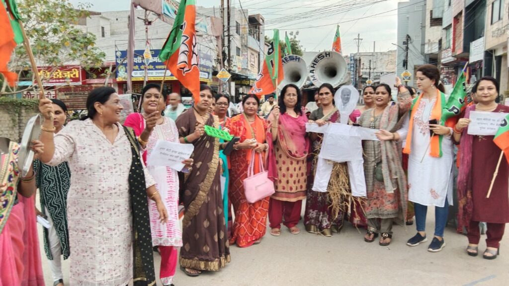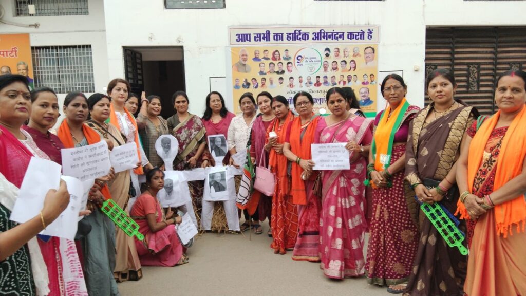 सुकमा जिले के एर्राबोर में 6 वर्ष की नाबालिक बच्ची के साथ हुए दुष्कर्म के विरोध में आज भारतीय जनता पार्टी जिला बिलासपुर की महिला मोर्चा के कार्यकर्ताओं ने भाजपा कार्यालय से रैली निकाल कर डॉ.श्यामा प्रसाद मुखर्जी चौक पुराना बस स्टैण्ड बिलासपुर में मुख्यमंत्री भूपेश बघेल और प्रदेश के गृहमंत्री का पुतला फूंका महिला मोर्चा की जिलाध्यक्ष जयश्री चौकसे के नेतृत्व में जिले के विभिन्न मंडलों से आए महिला मोर्चा की बहनों ने भाजपा कार्यालय से शंखनाद एवं थाली पीट कर राज्य सरकार के विरोध में नारे बुलंद करते हुए पुराना बस स्टैंड चौक पर पहुॅच कर धरना दिया। उन्होंने सुकमा जिले में हुई घटना की निंदा करते हुए मुख्यमंत्री और गृहमंत्री का पुतला फूंका। इस बीच पुतला को लेकर महिला मोर्चा की बहनों और पुलिस के साथ झूमा झटकी भी हुई अंततः वे पुतला जलाने में सफल हुए घटना पर अपनी प्रतिक्रिया देते हुए महिला मोर्चा की पूर्व प्रदेशाध्यक्ष राष्ट्रीय कार्यसमिति सदस्य पूजा विधानी ने कहा कि भूपेश सरकार प्रदेश की कानून व्यवस्था को सम्हाल पाने में असफल रही है छत्तीसगढ़ में महिलाओ और बच्चो पर होने वाली अपराधो में वृद्धि हुई है सरकारी संरक्षण में अपराधियों का मनोबल बढ़ा हुआ है वे अपने को कानून से ऊपर समझने लगे हैं भाजपा की जिला मंत्री सुधा गुप्ता ने कहा कि सरकार को इस घटना की नैतिक जिम्मेदारी लेते हुए इस्तीफा दे देनी चाहिए। महिला मोर्चा की जिलाध्यक्ष जयश्री चौकसे ने राज्य सरकार पर आरोप लगाते हुए कहा कि आज तारीख में छत्तीसगढ़ से 14017 बेटियां लापता हैं 46116 महिलाएं गायब हैं 5000 हजार महिलाओं के साथ दुष्कर्म हुआ है हजारों हत्याएं हुई हैं अपहरण के 11000 से भी अधिक के मामले प्रदेश के विभिन्न थानों में दर्ज हैं 2019 से 2021के बीच 110 फीसदी यौन उत्पीड़न और छेड़ छाड़ के मामले बढ़े हैं ऐसी निकम्मी सरकार को शर्म आनी चाहिए और अपनी असफलता पर प्रदेश महिलाओं से माफी मांगनी चाहिए।