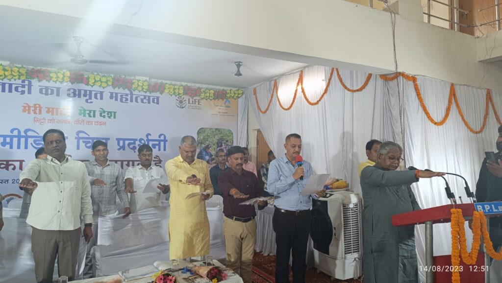 पूर्व विधानसभा अध्यक्ष धरमलाल कौशिक ने भारत सरकार, सूचना एवं प्रसारण मंत्रालय के केन्द्रिय संचार ब्यूरो, प्रादेशिक कार्यालय रायपुर द्वारा आजादी के अमृत महोत्सव के अवसर पर प्रधानमंत्री नरेन्द्र मोदी द्वारा चलाए जा रहे विशेष अभियान मेरा माटी, मेरा देश के तहत जिला बिलासपुर के विधानसभा बिल्हा स्थित सांस्कृतिक भवन में आयोजित तीन दिवसीय मल्टीमीडिया चित्र प्रदर्शन कार्यक्रम में मुख्य अतिथी के रूप में शामिल हुए इस अवसर पर श्री कौशिक के कर-कमलों से प्रदर्शनी का उद्धाटन किया गया इसके साथ ही 14 अगस्त 1947 के विभाजन को याद करते हुए विभाजन विभीषिका स्मृति दिवस मनाया गया एवं विभाजन की विभीषिका को झेलने वाले में से एक जयासवानी परिवार के सदस्य को सम्मानित कर विभीषिका को झेलकर बलिदान देने वालें लाखों- करोड़ों निर्दोष नागरिकों व सभी वीर सपूतों को याद कर उन्हें विनम्र श्रद्धाजंली दी गयी। इसके साथ ही पूर्व विधानसभा अध्यक्ष कौशिक ने छात्रों के साथ मिलकर जागरूकता रैली निकालकर वृक्षारोपण किया।