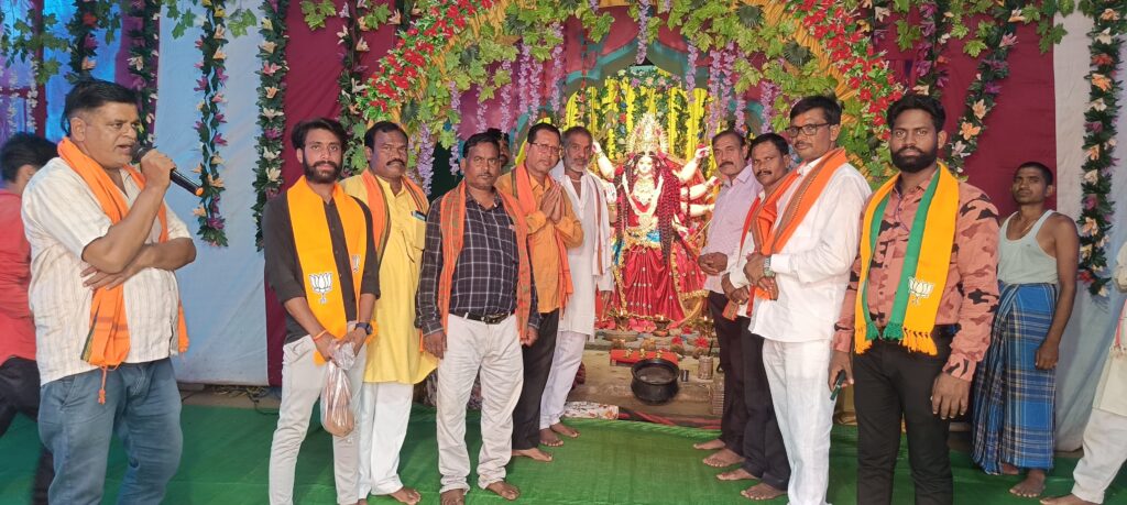 साथ ही नवरात्री के सुअवसर पर संतोष लहरे जी ने गांव के विभिन्न स्थानों पर विराजित दुर्गा पंडाल व देवी मंदिरों में जाकर पूजा-अर्चना व श्रीफल चढ़ाकर माता रानी से विजय आशीर्वाद की कामना किए। दुर्गा समिति के सदस्यों ने भी संतोष कुमार लहरे जी का फूल माला व श्रीफल भेंट कर स्वागत अभिनन्दन किया।