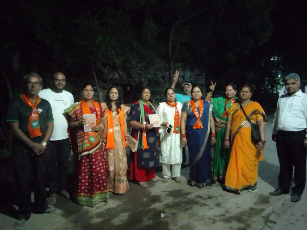 भाजपा प्रत्याशी डॉ कृष्णमूर्ति बांधी की धर्मपत्नी श्रीमति बांधी ने महिला मोर्चा मंडल की पदाधिकरियो के साथ देवरीखुर्द वार्ड क्रमांक 42 चंद्रशेखर आजाद नगर व वार्ड क्रमांक 43 बंसीलाल घृत लहरे नगर हाऊसिंग बोर्ड कॉलोनी देवरीडीह, मंगलविहार , में घर-घर पहुंचकर भाजपा को विजयी बनाने की अपील की।