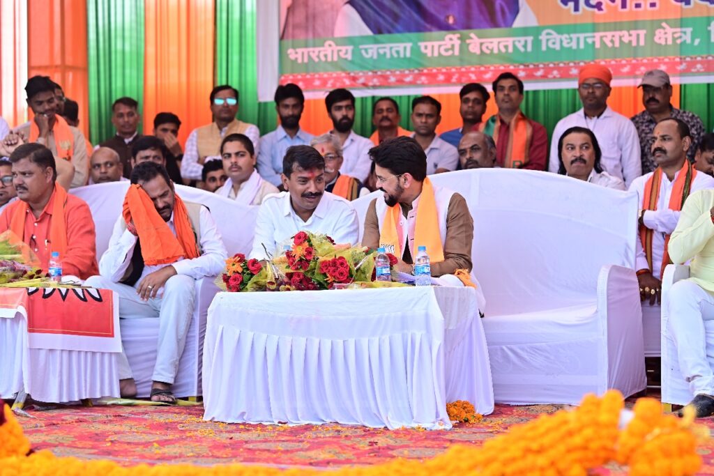 अनुराग सिंह ठाकुर ने कहा, भारत माता की जय वंदे मातरम् रजनीश सिंह जय श्री राम, सुशांत शुक्ला जय श्री राम सभी उपस्थित लोगों ने साथ में कहा अनुराग सिंह ठाकुर ने कहा छत्तीसगढ़ में वह कौन सा स्थान है जहां भाजपा हमेशा जीतता है मैं उस स्थान को देखना चाहता हूं यह सोचकर के मैं दिल्ली से बेलतरा आया हूं बेलतरा विधानसभा के जनता को मै प्रणाम करता हूं विसम परिस्थिति में भी भाजपा को आप सबने जिताया है, आज एक पैसा वाला है कांग्रेस प्रत्यासी और भाजपा का प्रत्याशी आपका अपना बेटा है आप किसके साथ हो जनता ने कहा हम सुशांत शुक्ला के साथ खड़े है, उन्होने अपने वक्तव्य में कहा की मोदी की गारंटी है मोदी जी ने जो कहा वो पूरा किया है,