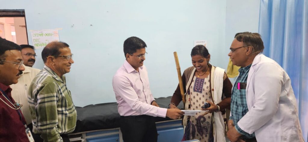 कलेक्टर श्री अवनीश शरण ने आज फिर जिला अस्पताल का औचक निरीक्षण किया। उन्होंने अस्पताल में भर्ती मरीजों से मुलाकात कर मिल रहे इलाज एवं अन्य सुविधाओं का जायजा लिया। कलेक्टर ने मरीजों के साथ संवेदनशील एवं मानवतापूर्ण बरताव करने के निर्देश दिए। उन्होंने सीएमएचओ को सभी ब्लॉकों में शिविर के माध्यम से दिव्यांगों को प्रमाण पत्र जारी करने कहा। कलेक्टर ने अस्थिरोग विभाग के ओपीडी मंे मस्तूरी ब्लॉक के सोनलोहर्सी से आई दिव्यांग ननकी बाई का दिव्यांग प्रमाण पत्र तत्काल बनवाकर प्रदान किया।