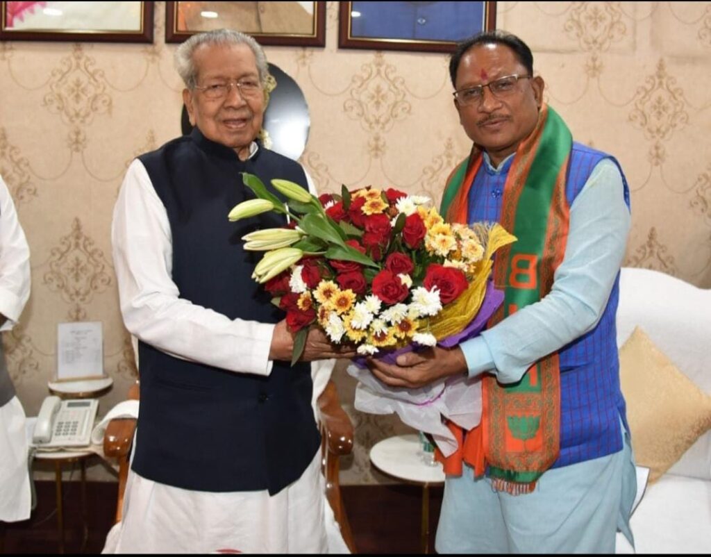 छत्तीसगढ़ प्रदेश भाजपा विधायक दल की बैठक में नेता चुने जाने के बाद नवनिर्वाचित मुख्यमंत्री विष्णुदेव साय ने प्रधानमंत्री नरेंद्र मोदी, केंद्रीय गृहमंत्री अमित शाह, भाजपा राष्ट्रीय अध्यक्ष जेपी नड्डा सहित केंद्रीय नेतृत्व, प्रदेश भाजपा प्रभारी ओम माथुर, चुनाव सह प्रभारी केंद्रीय मंत्री मनसुख मांडविया, राष्ट्रीय उपाध्यक्ष डॉ. रमन सिंह,संगठन सह प्रभारी नितिन नबीन, प्रदेश अध्यक्ष अरुण साव सहित सभी विधायकों के प्रति आभार व्यक्त करते हुए कहा कि छत्तीसगढ़ की जनता ने भाजपा को जो जिम्मेदारी सौंपी है, उसमें भाजपा की सरकार जनता की कसौटी पर खरी उतरेगी। 25 दिसंबर को किसानों को दो साल के बकाया बोनस का भुगतान कर दिया जाएगा। मोदी जी की सभी गारंटी पूरी होंगी। भाजपा को छत्तीसगढ़ की जनता ने विकास और खुशहाली का भरोसा व्यक्त किया है। भाजपा की सरकार अपने संकल्प को सर्वोच्च प्राथमिकता के साथ पूरे करेगी। हम सभी अभी से जनता के सपनों को पूरा करने में जुटेंगे। छत्तीसगढ़ सुशासन, विकास और लोक समृद्धि की त्रिवेणी बनेगा। वनांचलों का तेज गति से विकास होगा। प्रधानमंत्री मोदी जी और भाजपा की मंशा के अनुसार छत्तीसगढ़ के वनांचलों का, वहां के निवासियों का विकास होगा। भाजपा की सरकार राज्य के हर हिस्से को विकास की नई दिशा देगी।
