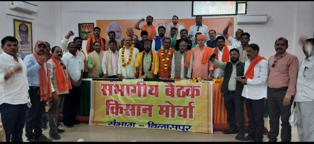 जिसमे मरवाही विधानसभा में बल्लू सिंह,कोटा में बृजलाल राठौर,बिलासपुर प्रणव शर्मा,बिल्हा मंगल सिंह,मस्तुरी बी पी सिंह, तखतपुर राकेश तिवारी लोरामी रिजवान हक, बेलतरा द्वारीकेश पाण्डे,रायगढ़ नीतीश चौथा,लैलूंगा घनश्याम पटेल, धरमजयगढ़ टीकाराम पटेल,खरसिया राजकुमार छत्तर,मुंगेली मानस प्रताप,कोरबा राकेश यादव,रामपुर प्रीतम सिंह गोयल,सारंगगढ़ पुलकित चंद्रा, बिलाईगढ़ रेवती चंद्रा दयाराम चौधरी को जिम्मेदारी दी गई है बैठक में प्रमुख रूप से किसनमोर्चा के जिलाध्यक्ष दुर्गा कश्यप, महामंत्री मनीष कौशिक,प्रदीप शुक्ला,जिला उपाध्यक्ष बिहारी साहू,जिला मंत्री राकेश गुप्ता, अभिजीत पांडेय,जिला सोशल मीडिया प्रभारी नागेंद्र शर्मा, जयेश तिवारी उपस्थित थे।