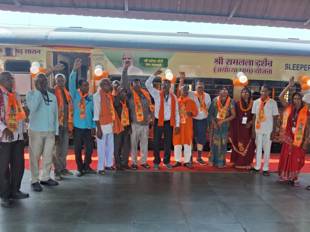 बिलासपुर में डिप्टी सीएम व वृत्त मंत्री ने ट्रेन को हरी झंडी दिखाकर अयोध्या के लिए रवाना किया।