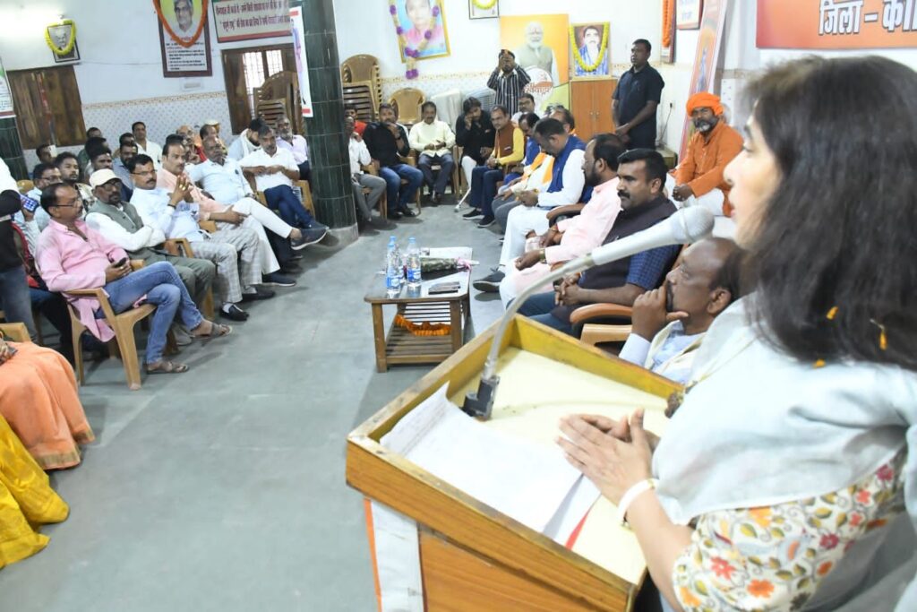 जिसने चुनाव जीतने के बाद कभी क्षेत्र की ओर मुड़कर झांका तक नहीं । आज जब हम गांव-गांव पहुंच रहे हैं तो जनता स्वयं कांग्रेस सांसद को कार्यकाल के दौरान लापता होना बता रही है, साथ ही उन्होंने विकास कार्य करना तो दूर क्षेत्र की जनता का सुख दुख भी नहीं बांटा और हमेशा केंद्र सरकार द्वारा राष्ट्रहित में लिए गए फैसले का सदन में विरोध करती रहीं । सुश्री पांडेय ने कहा कि पार्टी ने मुझ पर भरोसा जताया है तो मेरी जिम्मेदारी बनती है की यहां के जनता के उम्मीदों पर खरा उतरू और इस क्षेत्र का विकास करू । उन्होंने कहा की मैं पूर्ण विश्वास दिलाना चाहती हूं की आगामी कार्यकाल में आपकी सांसद आपके लोकसभा क्षेत्र में रहकर आपकी समस्याओं को सुनकर केवल और केवल विकास के लिए ही काम करेगी और आपके सुख दुख में सदैव उपस्थित रहेगी । बैठक में मुख्य रूप से कोरबा लोकसभा प्रत्याशी सुश्री सरोज पांडेय,भाजपा जिला अध्यक्ष कृष्ण बिहारी जायसवाल,जिला उपाध्यक्ष लक्ष्मण राजवाड़े,शैलेश शिवहरे, जिला महामंत्री पंकज गुप्ता, विनोद साहू,मंडल अध्यक्ष कुबेर साहू,जिला संवाद प्रमुख विमल कांत गुप्ता,कार्यालय प्रभारी भानू पाल,युवा मोर्चा जिला अध्यक्ष हितेश प्रताप सिंह,जिला पंचायत सदस्य वंदना राजवाड़े,बैकुंठपुर नगर पालिका अध्यक्ष नविता शिवहरे,महिला मोर्चा जिला अध्यक्ष धर्मवती राजवाड़े,जनपद सदस्य सौभाग्यवती सिंह सहित बड़ी संख्या में भाजपा कार्यकर्ता उपस्थित रहे।