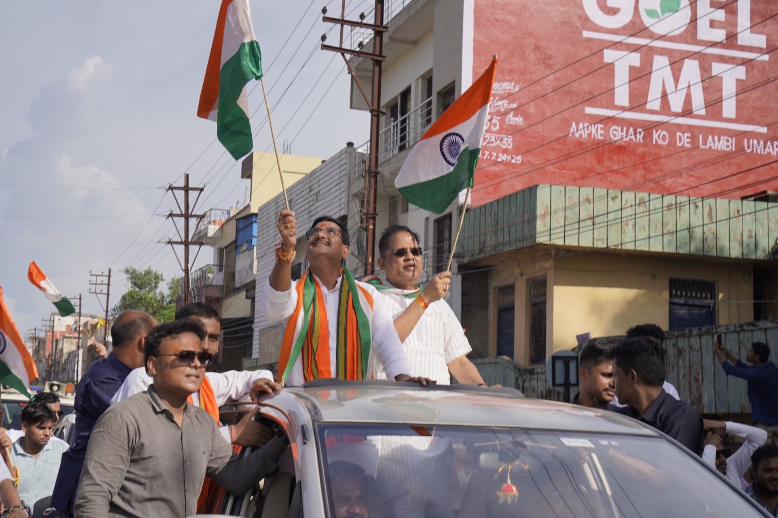 आज से बिलासपुर जिले में तिरंगा यात्रा शुभारंभ किया गया पार्टी द्वारा तय किए गए कार्यक्रम के अनुरूप विधानसभा बिलासपुर के भाजपाइयों ने बिलासपुर विधायक अमर अग्रवाल के नेतृत्व में तोरवा चौक से मोटरसाइकल रैली के शक्ल में भव्य तिरंगा यात्रा निकाली केंद्रीय राज्य मंत्री तोखन साहू की उपस्थिति में हाथों में तिरंगा झण्डा फहराते हुए शोभायात्रा क्रमशः गांधी चौक जूना बिलासपुर सिटी कोतवाली चौक गोल बजार सदर बाजार देवकीनंदन चौक चांटापारा होते हुए अंत में नेहरू चौक पर समापन किया गया शोभायात्रा को संबोधित करते हुए भारत सरकार में *केंद्रीय राज्य मंत्री तोखन साहू* ने कहा कि आज हम एक बदलते हुए भारत को देख रहें हैं