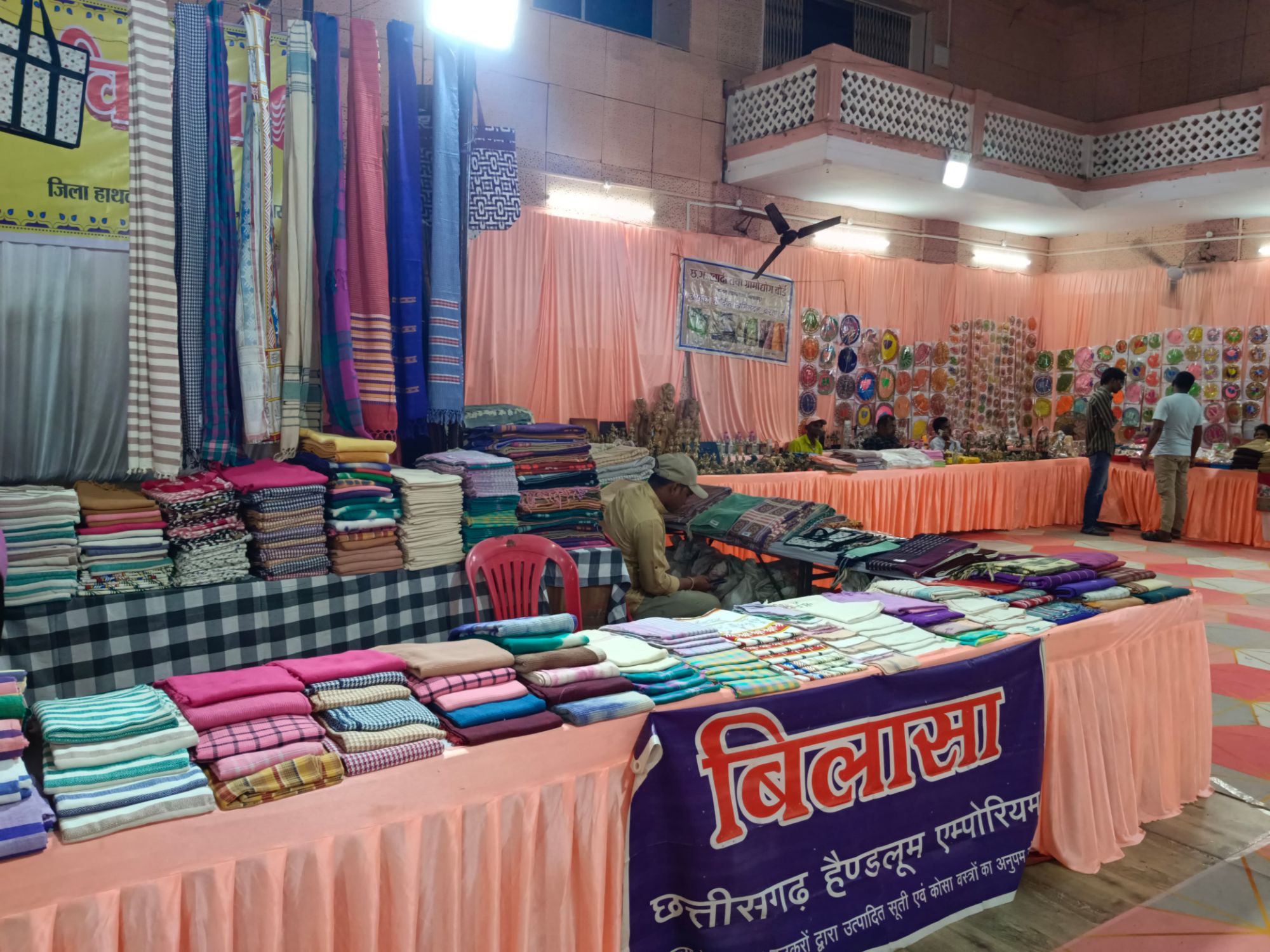 छत्तीसगढ़ शासन ग्रामोद्योग विभाग, संचालक ग्रामोद्योग हाथकरघा के सौजन्य से जिला हाथकरघा कार्यालय बिलासपुर के माध्यम से तीजा-पोला के उपलक्ष्य में कोसा एवं कॉटन ऑफ छत्तीसगढ़ हाथकरघा वस्त्र प्रदर्शनी सह विक्रय का दिनांक 29 अगस्त से 05 सितंबर 2024 का राघवेन्द्र राव सभा भवन, कम्पनी गार्डन के पास, बिलासपुर (छ.ग.) में आयोजन किया जा रहा है। इस प्रदर्शनी में छत्तीसगढ़ प्रदेश की हाथकरघा, हस्तशिल्प,कलाकृतियों एवं कोसा व खादी के उत्कृष्ट वस्त्रों की प्रदर्शनी लगाई गई है जिसे देखने और खरीददारी करने बड़ी संख्या में लोग पंहुच रहे हैं।