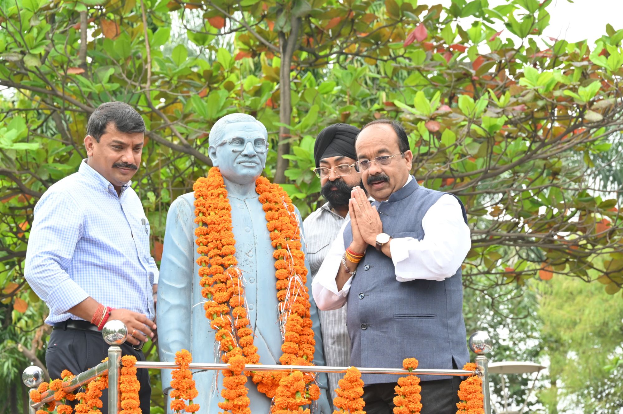 पंडित दीनदयाल उपाध्याय जी की जयंती के अवसर पर आज व्यापार विहार स्थित दीनदयाल गार्डन में भाजपा के दिग्गज नेता और कार्यकर्ता उपस्थित हुए उप मुख्यमंत्री श्री अरूण साव,बिल्हा विधायक धरमलाल कौशिक बेलतरा विधायक सुशांत शुक्ला तखतपुर विधायक धर्मजीत सिंह भाजपा प्रदेश उपाध्यक्ष भूपेन्द्र सवन्नी जिला पंचायत अध्यक्ष अरुण सिंह चौहान सहित जिलाध्यक्ष रामदेव कुमावत ने एकात्म मानववाद के प्रणेता,प्रसिद्ध विचारक एवं चिंतक पंडित दीनदयाल उपाध्याय की जयंती पर उन्हें सादर नमन करते हुए उनकी प्रतिमा पर माल्यार्पण कर श्रद्धांजलि अर्पित की इस अवसर पर नगर निगम द्वारा आयोजित स्वच्छता ही सेवा अभियान में सभी नेताओं ने भी भाग लिया छत्तीसगढ़ शासन में उप मुख्यमंत्री अरुण साव और जनप्रतिनिधियों ने स्वच्छता अभियान पर जागरूकता लाने के ध्येय से गार्डन परिसर पर झाड़ू लगा कर साफ सफाई की साथ ही स्वच्छता दीदियों को साड़ी और किट भी वितरित किए उपस्थित जनप्रतिनिधियों ने स्वच्छता मैराथन को हरी झंडी दिखाई