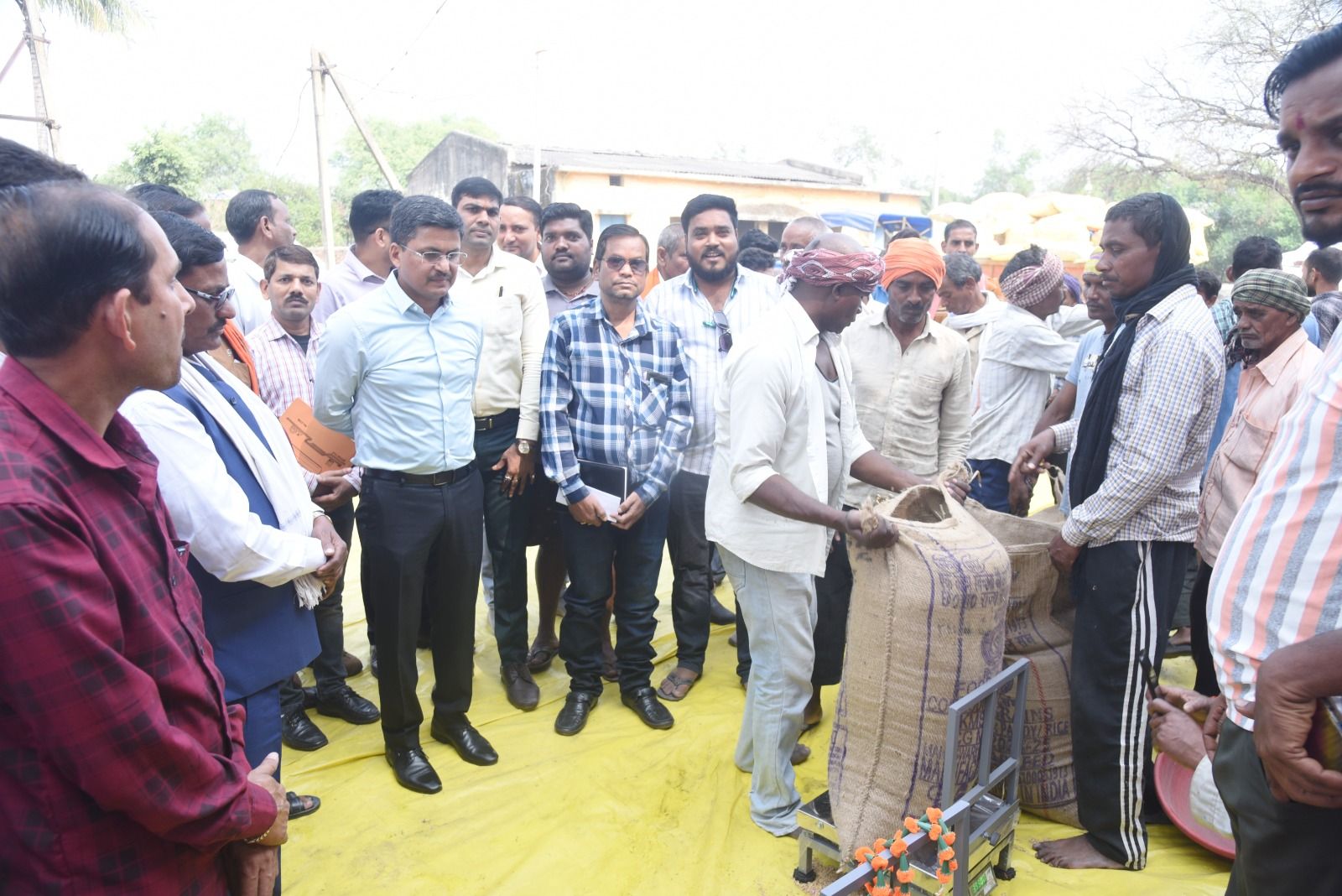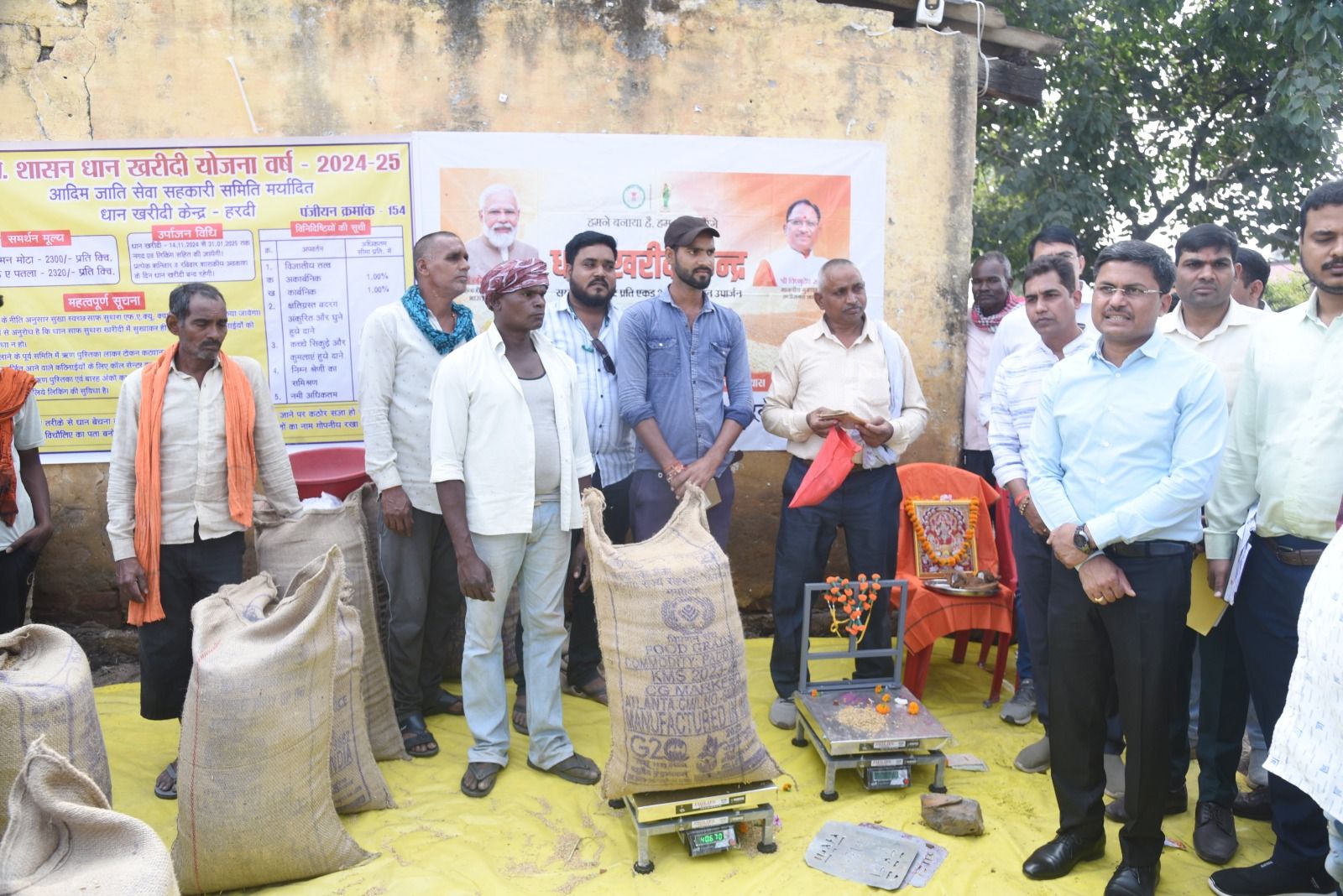 जिले में आज से धान खरीदी पर्व का आगाज हो गया है। कल धान बेचने के लिए टोकन कटाने वाले किसान आज सुबह से ही समितियों में धान लेकर बेचने पहुंचे। पहले ही दिन 194 किसानों ने धान बेचने के लिए टोकन कटवाया है। 120 टोकन एप द्वारा और 74 टोकन समितियों द्वारा कटवाया गया है। इन किसानों से 80 समितियों में 9 हजार 122 क्विंटल धान की खरीदी की जाएगी। धान खरीदी को लेकर किसानों में खासा उत्साह देखा जा रहा है। कलेक्टर श्री अवनीश शरण ने धान खरीदी अभियान का हरदीकला खरीदी केन्द्र में शुभारंभ किया। इलेक्ट्रॉनिक कांटा-बाट की पूजा अर्चना कर किसान श्री भुजबल यादव द्वारा लाए गए धान की तौलाई की। कलेक्टर ने श्री यादव सहित खरीदी केन्द्र में उपस्थित अन्य किसानों का स्वागत किया।