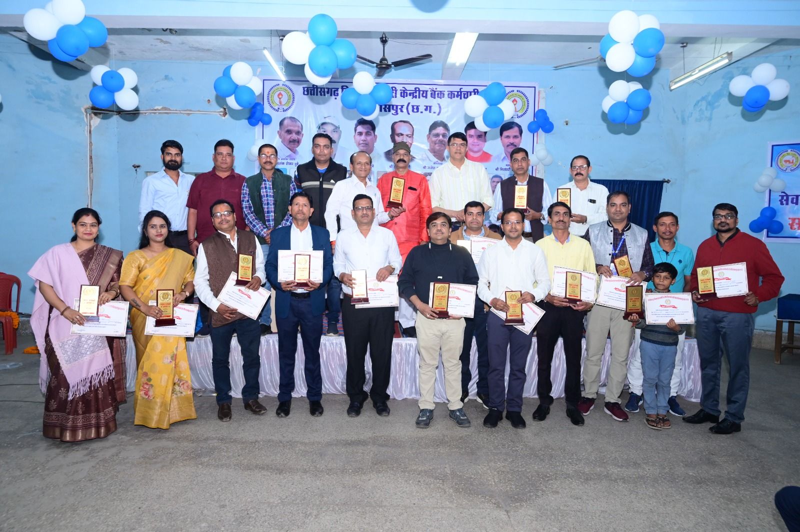 जिला सहकारी केंद्रीय बैंक मर्यादित कर्मचारी संघ द्वारा आज नव वर्ष मिलन समारोह एवं बैंक के कर्मचारियों के बच्चों प्रतिभावान बच्चों का सम्मान समारोह का आयोजन किया गया। सफर बैंक के सेवानिवृत कर्मचारियों को भी सम्मानित किया गया। समारोह के मुख्य अतिथि जिला सहकारी केंद्रीय बैंक के मुख्य कार्यपालन अधिकारी सुनील सोढ़ी तथा कर्मचारी संघ के अध्यक्ष भागवत यादव पूर्व अध्यक्ष शशांक शेखर दुबे आशीष दुबे, सुशील जोशी तरु तिवारी, सूर्यकांत जैसवाल ने प्रतिभावान बच्चों को सम्मानित किया। इस अवसर पर इस वर्ष 2024 में सेवानिवृत्त कर्मचारियों को सम्मानित भी किया गया, जिसमें प्रमुख रूप से बद्री कश्यप रंजना पांडे, विंध्यवासिनी सिंह, माधव सिंह चौहान, जवाहरलाल यादव , बद्री कश्यप को सेवानिवृत्ति पर श्रीफल साल से एवं स्मृति चिन्ह भेंट कर उन्हें सम्मानित किया गया । इसी प्रकार से आज बैंक के ऐसे 15 कर्मचारियों को सम्मानित किया गया जिन्होंने बैंक के हित में हित में उत्कृष्ट कार्य किया है जिसमें प्रमुख रूप से योगेंद्र पात्रै, सुशील जोशी ,नेहा पांडे आशीष दुबे, मीनाक्षी शर्मा, अनुराग निर्मलकर, संतोष सिंह ठाकुर, देवेंद्र देवांगन, रशीद खान रेशम लाल तिवारी ,विनय साहू ,अजय कुमार सिंह ,राजेश बानवे ,अनुभव मसीह ,पवन कुमार क्षत्रिय को श्रीफल एवं साल से सम्मानित करते हुए उन्हें इसी प्रकार के कार्य करने के लिए प्रेरित किया गया । जिला सहकारी केंद्रीय बैंक के मुख्य कार्यपालन अधिकारी सुनील सोढ़ी ने इस अवसर पर 40 से अधिक प्रतिभावान विद्यार्थियों छात्रों को सम्मानित भी छात्र-छात्राओं को सम्मानित किया जिन्होंने बोर्ड परीक्षा तथा विभिन्न क्षेत्रों में तथा महाविद्यालय परीक्षा में सर्वाधिक अंकों के साथ सफलता अर्जित की है ।