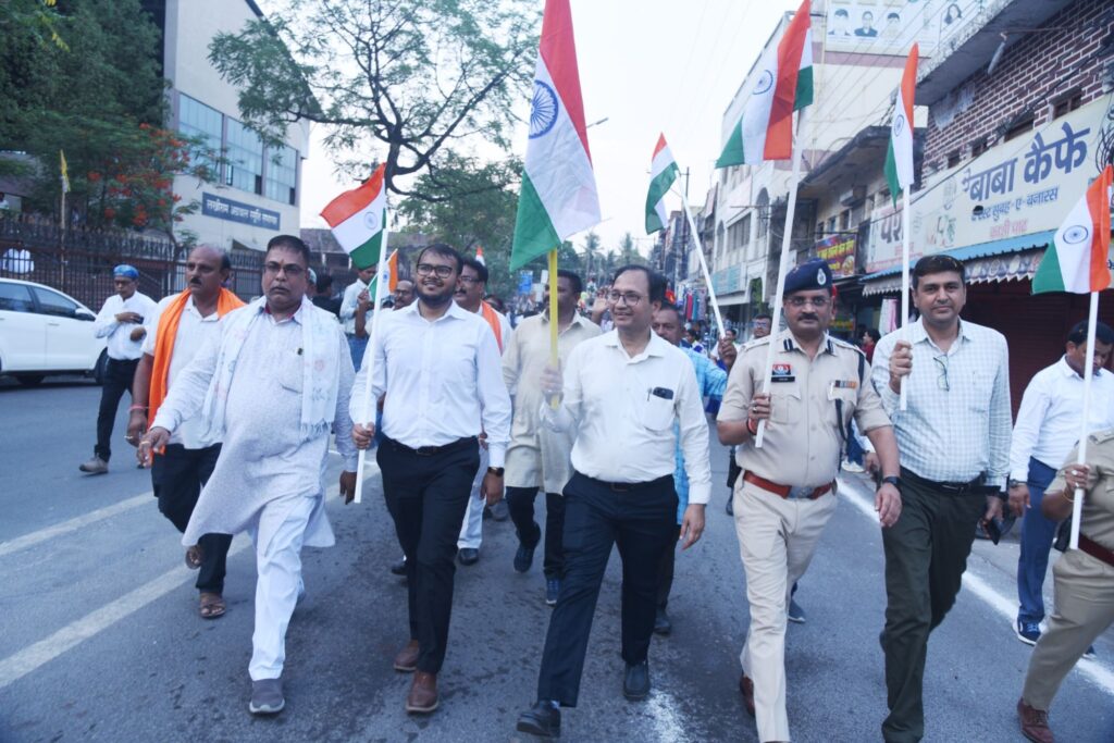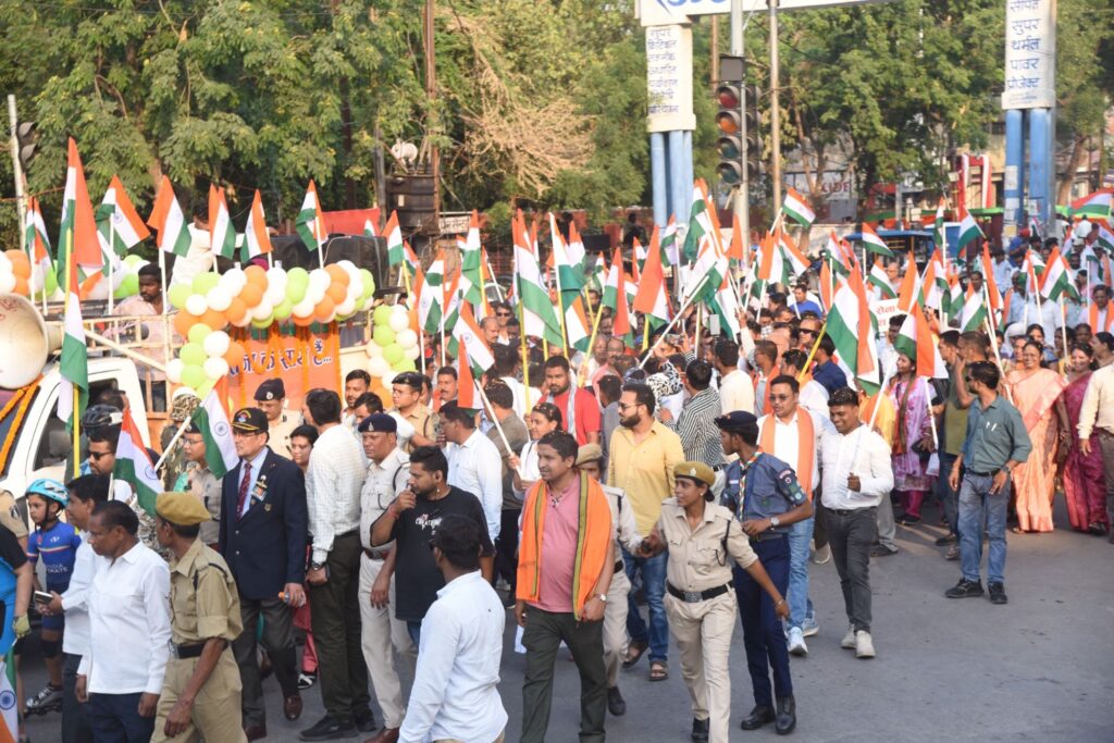 तिरंगे के सम्मान में आज तिरंगा यात्रा की शुरुआत मिनी स्टेडियम गांधी चौक से शुरू होकर लखीराम अग्रवाल ऑडिटोरियम में समाप्त हुई। बच्चों, युवाओं, महिलाओं और बुजुर्गों ने भी पूरे जोश और उत्साह के साथ भागीदारी निभाई। यात्रा के दौरान ‘भारत माता की जय’, ‘वंदे मातरम्’ और ‘जय हिंद’ के नारों से सम्पूर्ण वातावरण देशभक्ति से गूंज उठा। तिरंगा यात्रा में पूर्व सैनिक, स्कूली छात्र, एनसीसी, एनएस एस, स्काउट, खिलाड़ी, सामाजिक संस्थाओं के प्रतिनिधि, जनप्रतिनिधि और प्रबुद्ध नागरिक शामिल हुए। जिला पंचायत उपाध्यक्ष श्रीमती ललिता संतोष कश्यप, जिला पंचायत सदस्य श्री गोविंद वैष्णव, श्रीमती हर्षिता पांडे, श्री दीपक सिंह सहित अन्य जनप्रतिनिधि,नगर निगम कमिश्नर श्री अमित कुमार, जिला पंचायत सीईओ श्री संदीप अग्रवाल, जिला सैनिक कल्याण अधिकारी श्री हरिदत्त तिवारी, जिला शिक्षा अधिकारी श्री अनिल तिवारी, एडीपीओ श्री रामेश्वर जायसवाल, श्री वासुदेव पांडे, डीएमसी श्री ओम पांडे, जिला क्रीड़ा अधिकारी श्री सुशील मिश्रा, एनएनएनएस के प्रभारी श्री मनोज सिंहा, अरपा अर्पण अभियान के श्री श्याम मोहन दुबे सहित अन्य लोगों ने शिरकत की।