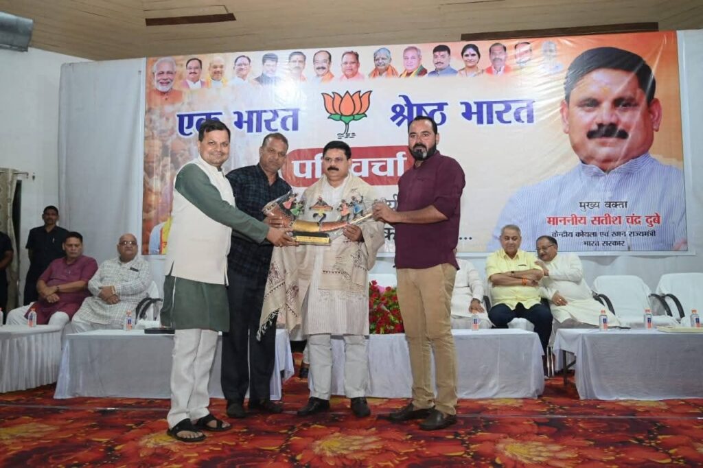 शहर के लखीराम सभागार मे आयोजित इस परिचर्चा में एवं सम्मान समारोह में आज एक भव्य, सारगर्भित एवं राष्ट्रप्रेरक कार्यक्रम का आयोजन किया गया। “एक भारत श्रेष्ठ भारत” विषय पर आयोजित इस परिचर्चा एवं सम्मान समारोह में अनेक गणमान्य अतिथियों सहित सामाजिक कार्यकर्ता,युवा,बुद्धिजीवि एवं जनप्रतिनिधियों ने भाग लिया कार्यक्रम के मुख्य विषय वक्ता केंद्रीय कोयला एवं खान मंत्री सतीश चंद्र दुबे ने कहा कि एक भारत श्रेष्ठ भारत’ केवल एक नारा नहीं, बल्कि यह एक राष्ट्रीय चेतना है, जो भारत की विविधताओं में एकता को मजबूत करती है। प्रधानमंत्री श्री नरेंद्र मोदी जी के नेतृत्व में यह अभियान भारत के सांस्कृतिक,सामाजिक और आर्थिक ताने-बाने को और अधिक सशक्त बना रहा है उन्होंने कहा कि लगातार की चली लंबी गुलामी के बाद जब देश आजाद हुआ तो ऐसी सरकार बनी जिसने सत्ता की चाहत से भारत की सांस्कृतिक विरासत और सामाजिक मूल्यों की अवहेलना की और जो तुष्टिकरण की राजनीति का सहारा लेकर देश की बहुसंख्यक आबादी की भावनाओं को अनदेखी करते रहे आजाद भारत में सनातन परंपरा और मूल्यों के प्रति घृणा उत्पन्न करने की साजिशें रची गई लेकिन जब 2014 में पूर्ण बहुमत के साथ नरेंद्र मोदी जी की सरकार बनते ही देश के भीतर एक सांस्कृतिक बदलाव देखने को मिला इसे हम अपने विरासतों और परंपराओं का उत्थान काल कह सकते हैं हमें गर्व है कि भारत आज वैश्विक मंच पर एक शक्तिशाली, एकजुट और आत्मनिर्भर राष्ट्र के रूप में उभर रहा है