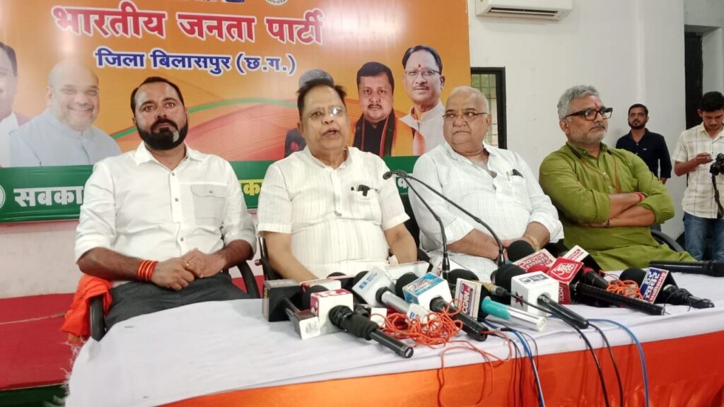 पत्रकार वार्ता में बिलासपुर शहर जिलाध्यक्ष दीपक सिंह जिला कोषाध्यक्ष गुलशन ऋषि जिला मीडिया प्रभारी प्रणव शर्मा समदरिया किशोर राय दुर्गेश पाण्डे मौजूद रहे।