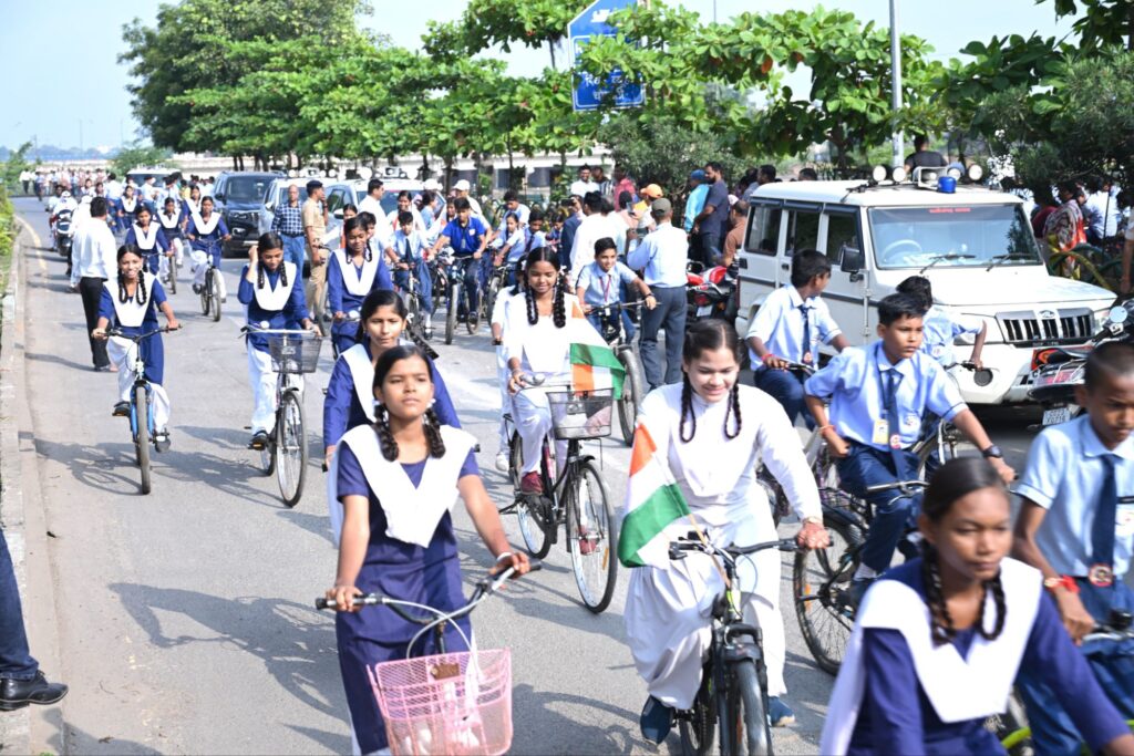 तिरंगा सायकिल रैली लाला बहादुर शास्त्री स्कूल मार्ग, सिटी कोतवाली चौक, गोल बाजार मार्ग, देवकीनंदन चौक और नेहरू चौक से होते हुए न्यू सर्किट हाउस तक पहुंची, स्कूली छात्रों ने तिरंगा लहराकर जोश और उत्साह से देशभक्ति के गीत गाए और “वंदे मातरम्”, “भारत माता की जय” के नारे लगाए। छात्रों ने सभी नागरिकों से हर घर तिरंगा अभियान में भागीदारी की अपील की। बिल्हा विधायक श्री धर्मलाल कौशिक, कलेक्टर श्री संजय अग्रवाल, निगम कमिश्नर श्री अमित कुमार, पुलिस अधीक्षक श्री रजनीश सिंह,जिला पंचायत सीईओ श्री संदीप अग्रवाल ने रैली की अगुआई की।