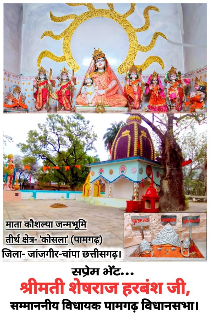 विधायक शेष राज हरबंस ने कहा कि यह हमारे लिए यह बहुत ही गर्व की बात है कि हमारा क्षेत्र प्रभु श्रीराम जी का मामा गांव है, माता कौसल्या का मायका है, पामगढ़ विधानसभा अंतर्गत कोसला गांव माता कौसल्या की जन्मभूमि है, और वहां की धार्मिक आध्यात्मिक सुंदरता को बनाए रखने के लिए हम हर संभव प्रयास करेंगे।