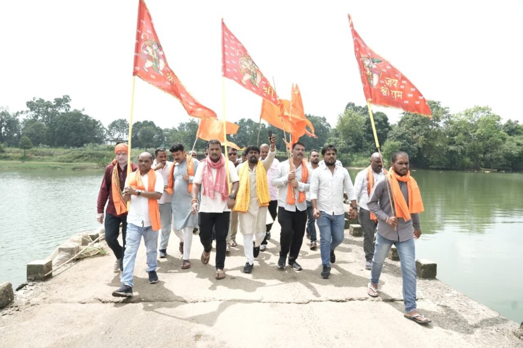 नवरात्रि के पावन अवसर पर बेलतरा विधानसभा में विधायक सुशांत शुक्ला द्वारा निकाली गई 171 किमी लंबी ध्वजा यात्रा क्षेत्र में सनातन संस्कृति, भक्ति और उत्साह का अनूठा संगम बन गई है। यह यात्रा बारिश और चिलचिलाती धूप में भी निरंतर जारी है।22 सितंबर को गिरजाबंद हनुमान मंदिर से प्रारंभ हुई यात्रा अब तक 100 किलोमीटर की दूरी तय कर चुकी है, जिसमें 31 गाँव शामिल हैं। ध्वजा यात्रा का उद्देश्य पूरे विधानसभा क्षेत्र में नवरात्रि पर्व को भक्तिमय वातावरण में मनाना, लोगों से संवाद करना तथा मंदिरों में दर्शन-पूजन कर क्षेत्र की समृद्ध धार्मिक परंपराओं को और भी भव्यता प्रदान करना है।