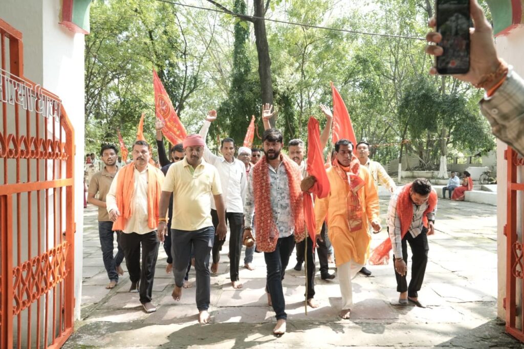 नवरात्रि के पावन अवसर पर पूरे विधानसभा क्षेत्र में सनातन धर्म की महान संस्कृति को और भी भव्यता प्रदान करने और भक्तिमय रंग में रंगने के लिए विधायक सुशांत ध्वजा यात्रा पर निकले हैं,इस दौरान क्षेत्र का सघन दौरा,ग्रामीणों से संवाद और गांवों के धार्मिक स्थानों पर जाकर मंदिरों का दर्शन कर रहे हैं। इस दौरान रात्रि विश्राम रोजाना जहां यात्रा समाप्त होता है वहां करते हैं, उसके बाद अगले दिन दूसरे पड़ाव के लिए पदयात्रा पर निकल जाते हैं। ध्वजा यात्रा जहां से भी गुजर रही है ग्रामीण फूल माला और नारियल से यात्रा और विधायक सुशांत का स्वागत कर रहे हैं। यात्रा के दौरान विधायक श्री शुक्ला के साथ युवाओं की टीम,कार्यकर्ता और ग्रामीण बड़ी संख्या में शामिल हो रहे हैं