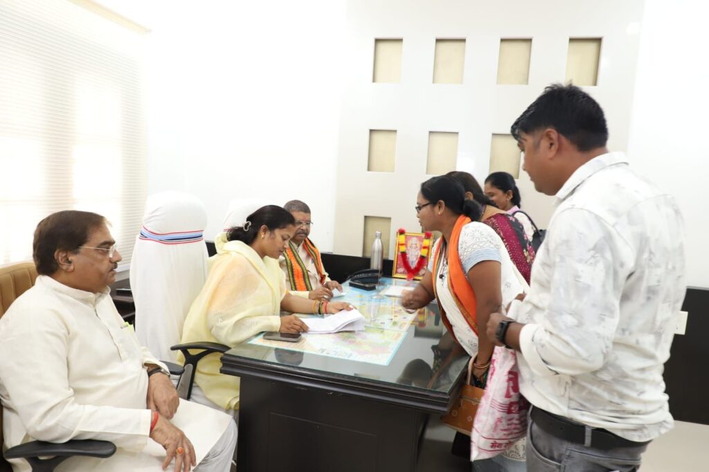 गुरुवार को सहयोग केंद्र में मंत्री श्रीमती राजवाड़े से 150 से अधिक कार्यकर्ताओं व आमजनों ने मुलाकात कर आवेदन दिए। मंत्री श्रीमती राजवाड़े ने कार्यकर्ताओं को आश्वस्त किया कि सभी समस्याओं का तेजी से निराकरण किया जाएगा। इस अवसर पर भाजपा प्रदेश महामंत्री डॉ. नवीन मार्कण्डेय, प्रदेश कार्यालय मंत्री अशोक बजाज एवं सहयोग केन्द्र प्रभारी सचिदानंद उपासने सहित पदाधिकारीगण व कार्यकर्तागण उपस्थित रहे।