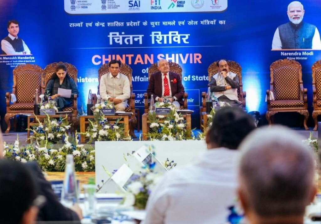 राज्यों एवं केंद्र शासित प्रदेशों के खेल मंत्रियों का दो दिवसीय चिंतन शिविर आज श्रीनगर के शेर-ए-कश्मीर इंटरनेशनल कॉन्फ्रेंस सेंटर (Sher-i-Kashmir International Conference Centre) में प्रारंभ हुआ। इस राष्ट्रीय स्तर के महत्वपूर्ण आयोजन में केंद्रीय युवा कार्य और खेल मंत्री डॉ. मनसुख मांडविया, राज्य मंत्री श्रीमती रक्षा निखिल खडसे, विभिन्न राज्यों और केंद्रशासित प्रदेशों के खेल मंत्री, वरिष्ठ अधिकारी एवं विशेषज्ञ शामिल हो रहे हैं।