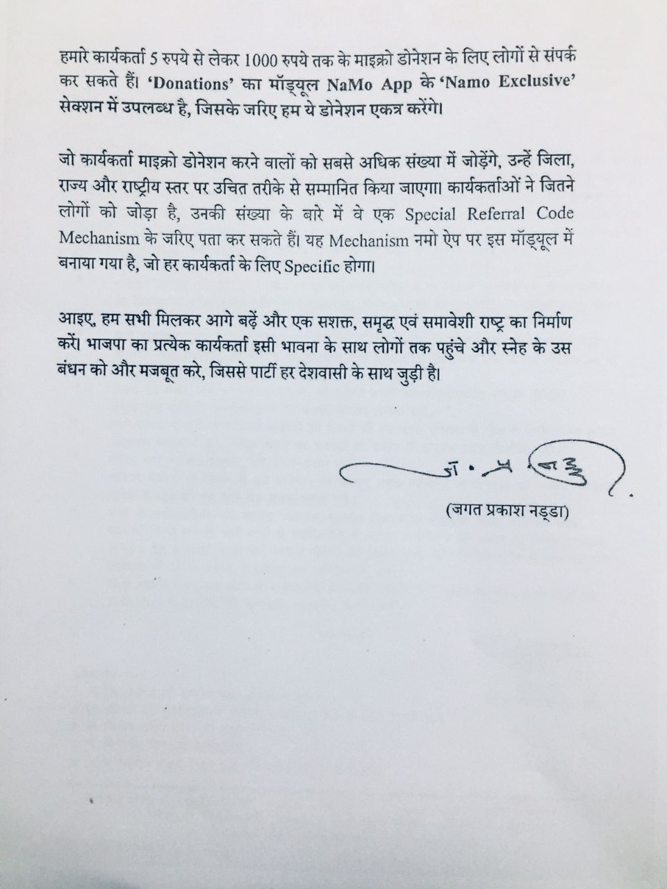संलग्न :- मा.जे.पी नड्डा जी, राष्ट्रीय अध्यक्ष जी का पत्र