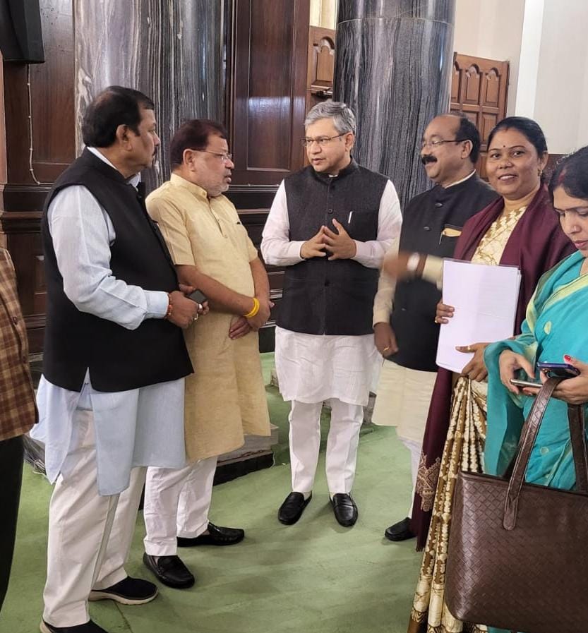 छत्तीसगढ़ प्रदेश भाजपा अध्यक्ष सांसद अरुण साव के नेतृत्व में छत्तीसगढ़ भाजपा के सभी सांसदों ने संसद में रेलमंत्री अश्विनी वैष्णव से मुलाकात कर बिलासपुर नागपुर वंदे भारत द्रुतगति रेल का उपहार देने पर धन्यवाद दिया।