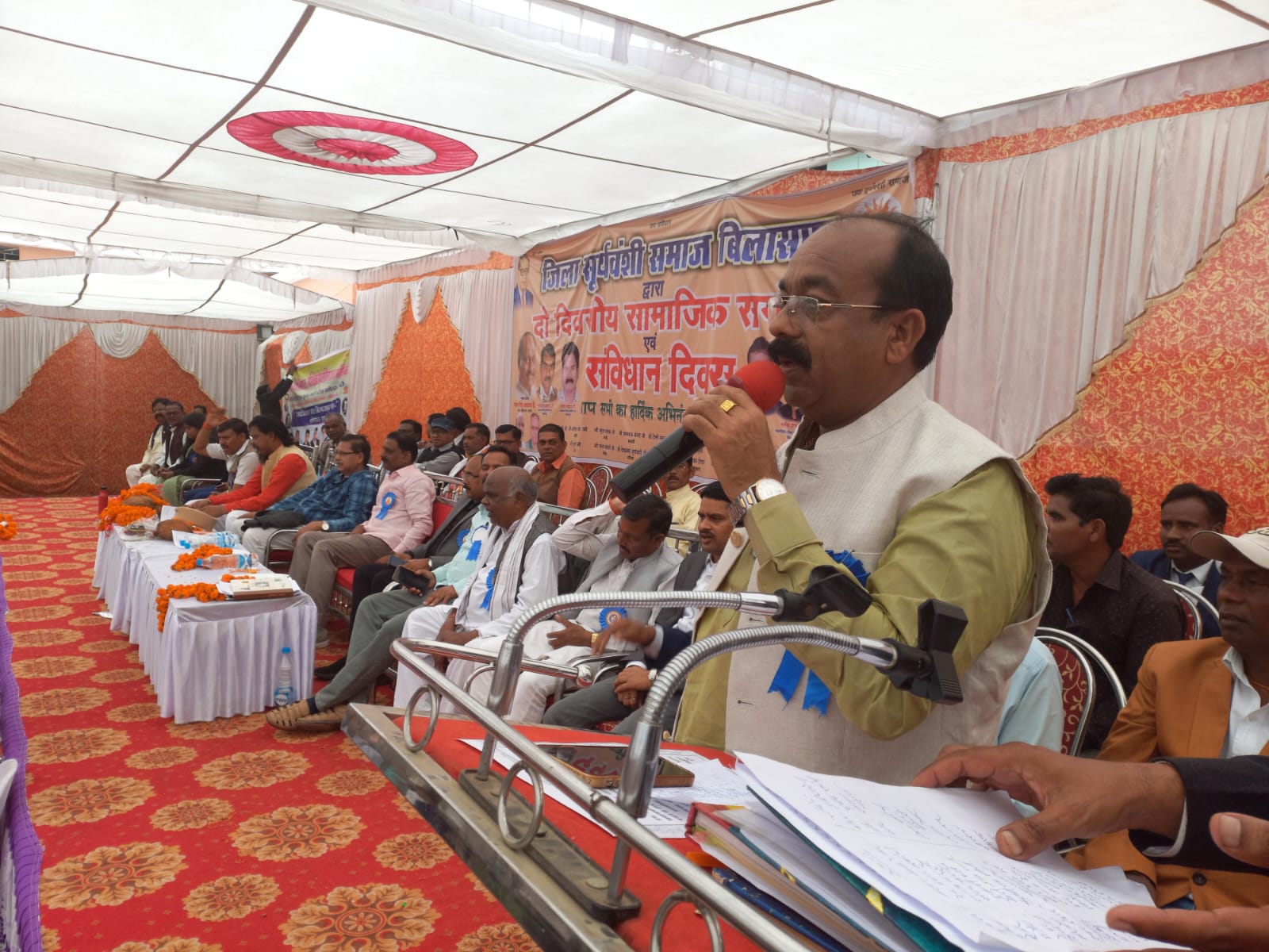 मटियारी में जिला सूर्यवंशी समाज द्वारा आयोजित समाजिक सम्मेलन और संविधान दिवस के कार्यक्रम में शामिल हुए जहाँ उन्होंने उपस्थित जनों को संबोधित करते हुए भारतीय संविधान के निर्माता भारत रत्न डॉ भीमराव अंबेडकर को नमन करते हुए देश के लिए उनके योगदान के प्रति कृतज्ञता ज्ञापित किया । मटियारी के कार्यक्रम के पश्चात काठाकोनी में विश्व हिंदू परिषद द्वारा आयोजित सामुहिक हनुमान चालीसा पाठ कार्यक्रम में सम्मिलित हुए । तत्पश्चात अरुण साव ने अपने शासकीय निवास में जनचौपाल के माध्यम से नागरिको एवं कार्यकर्ताओ की विभिन्न समस्याओं का तत्काल समाधान करने का प्रयास किया ।।